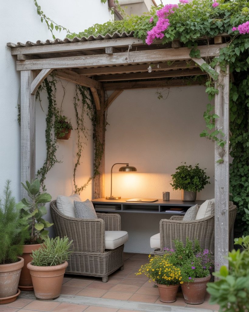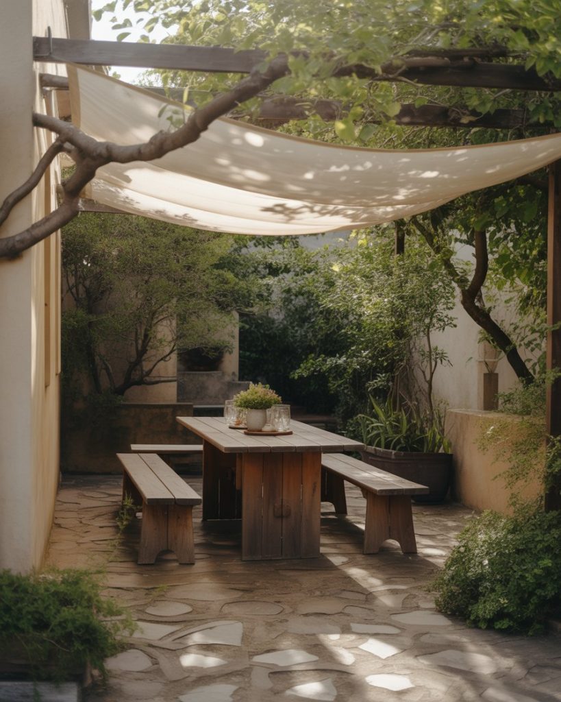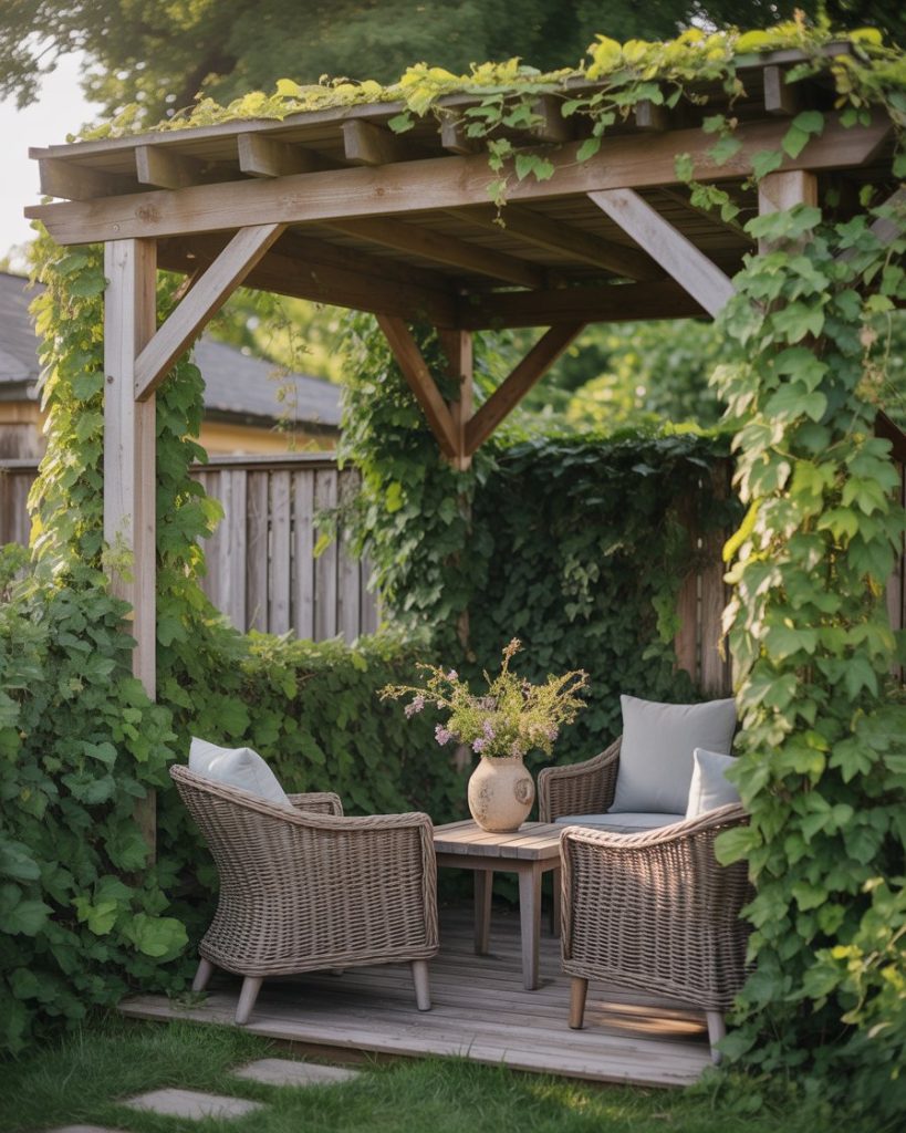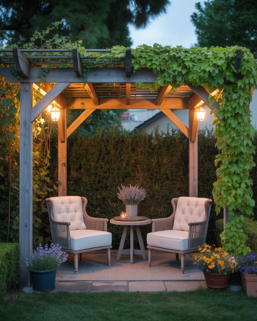 A modern pergola adds both structure and shade, perfect for lounging or dining outdoors. With design ideas using climbing vines and natural wood, this layout can turn a simple patio into a serene retreat — even on a budget.