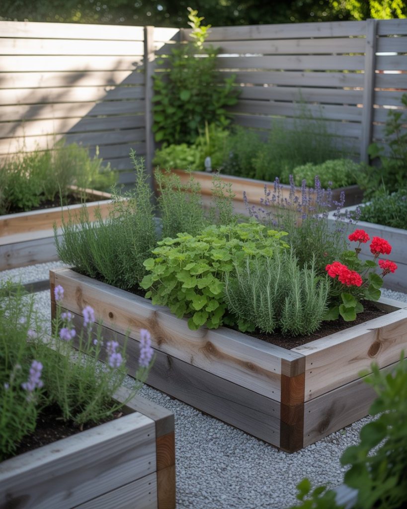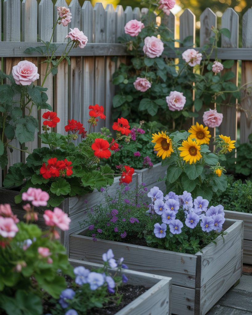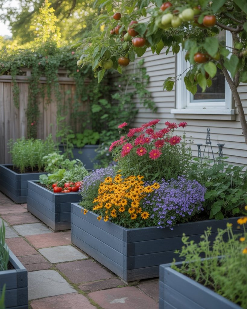 When space is limited, think upward with raised planters. This design layout keeps your garden neat, accessible, and full of color. It’s among the best a budget simple garden ideas for growing herbs, flowers, or small vegetables.