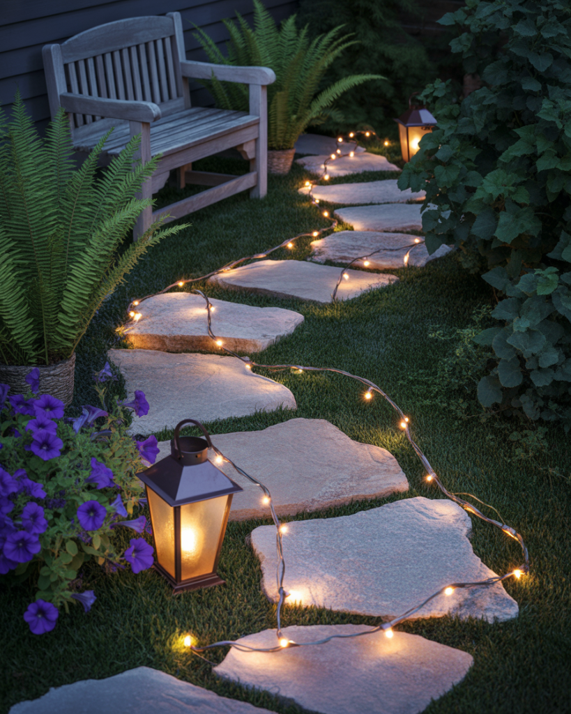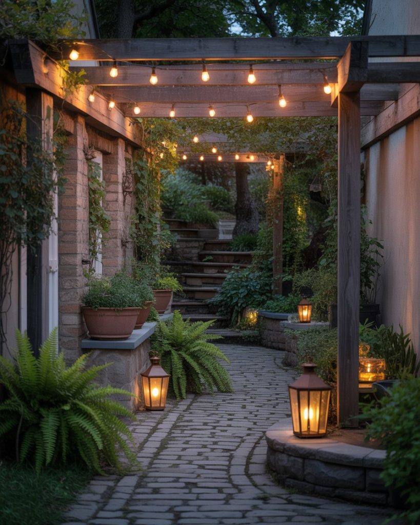 The right lighting transforms any layout. Use string lights, lanterns, or solar fixtures to highlight paths, plants, and seating areas. These design ideas make your small yard feel cozy, warm, and larger at night — even on a budget.