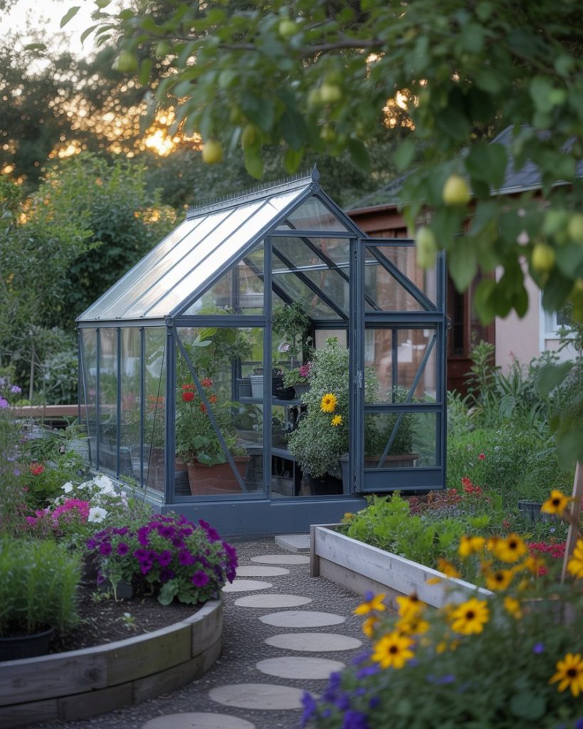 A tiny greenhouse can fit even in limited areas. It’s one of the most satisfying design ideas for those who love gardening. With glass panels and tidy layout, this idea on a budget lets you grow herbs and vegetables all year long.