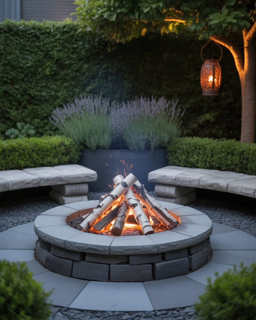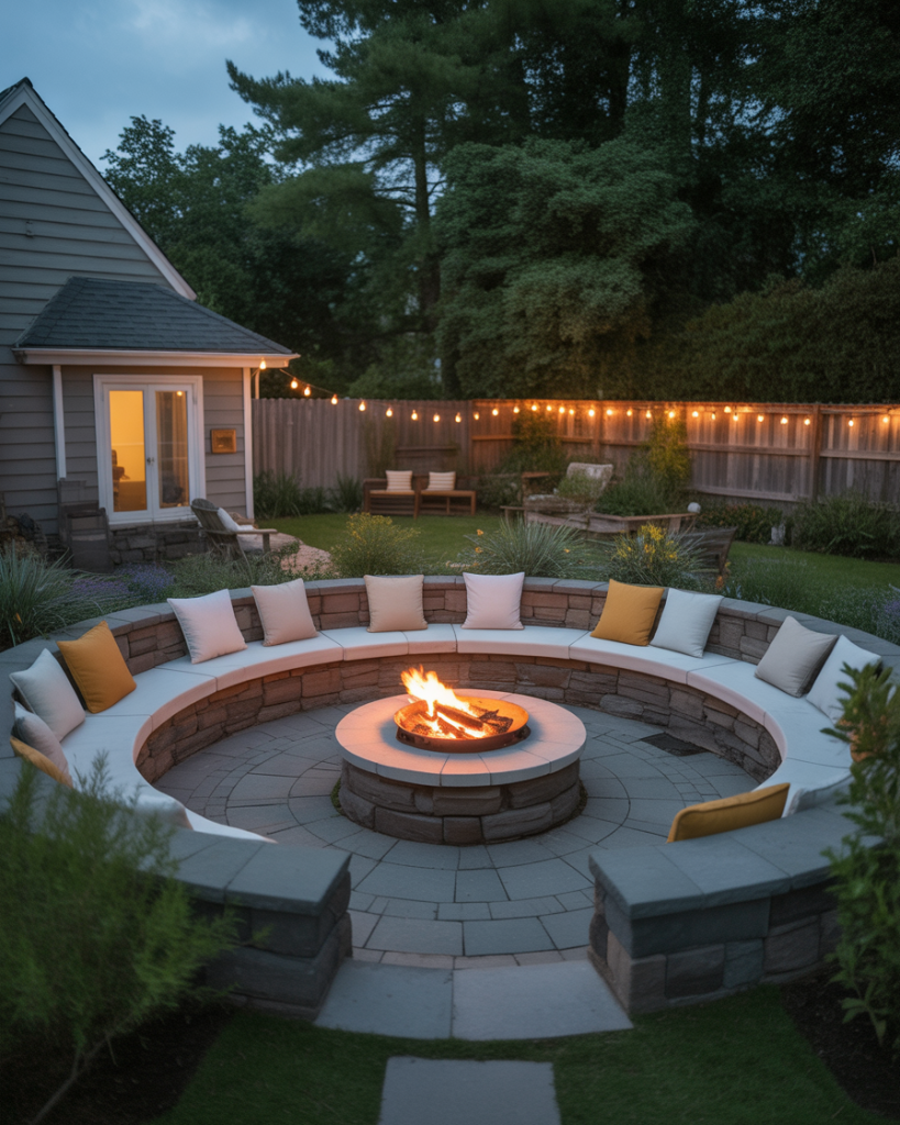 A fire pit can instantly turn your backyard into a warm social hub. This idea layout fits easily into small yards and pairs beautifully with stone or gravel surfaces. Gather friends, roast marshmallows, and enjoy long evenings under the stars.