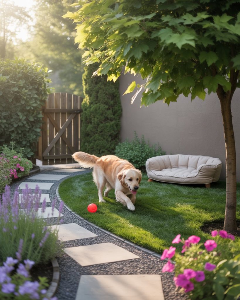 For pet lovers, designing with dogs in mind is both practical and rewarding. Go for a budget simple garden ideas with durable grass, shady corners, and paths for exploring. These design plans make your outdoor area perfect for both humans and pets.