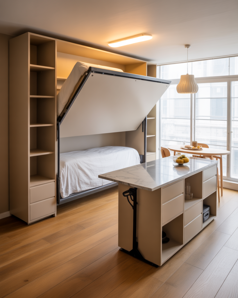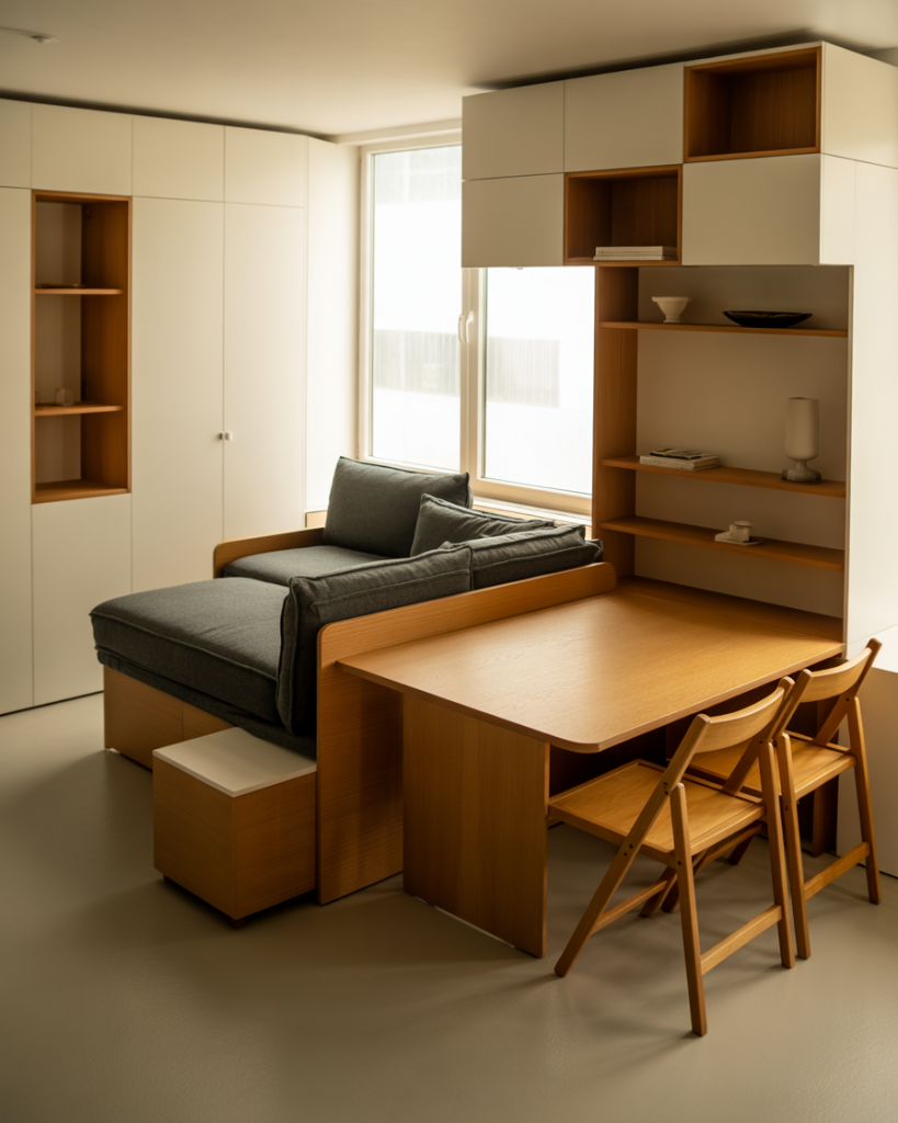 In small apartments with a layout of about 400 sq. ft., the impact of foldable and convertible furniture is significant. Having a Murphy bed that hides away, a multifunctional table that can serve bedside, and a foldable kitchen island can make a space evolve as the day progresses. I recall visiting a friend in a micro apartment with a wonderful and snug design where the sofa converted to a guest bed. Designers are predicting that small-space living for 2026 will focus on more flexible and modular furniture.
