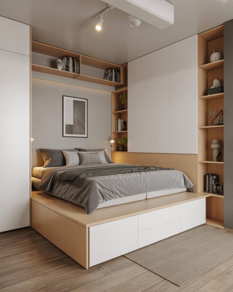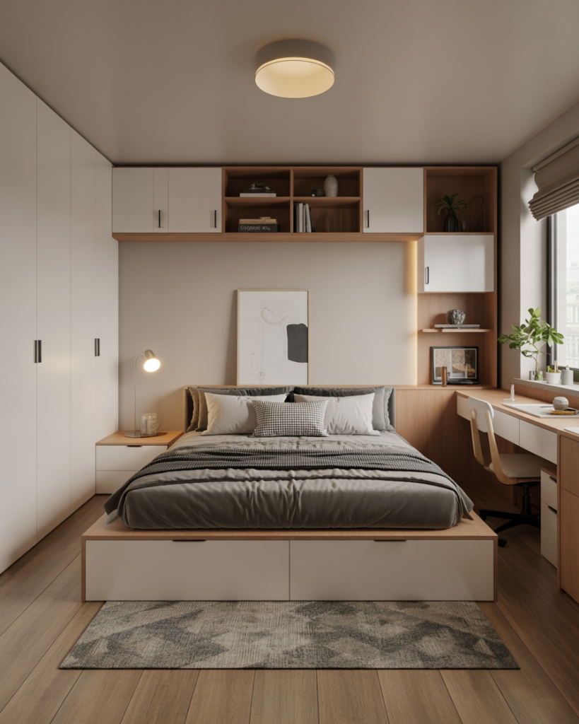 Building elevated levels can divide areas elegantly. A raised sleeping zone in a tiny 400 sq ft studio adds depth and storage underneath. This layout plan trick creates privacy without walls and keeps the space cozy yet dynamic. I visited a small urban flat where a wooden platform held the bed and drawers—it looked designed, not improvised.