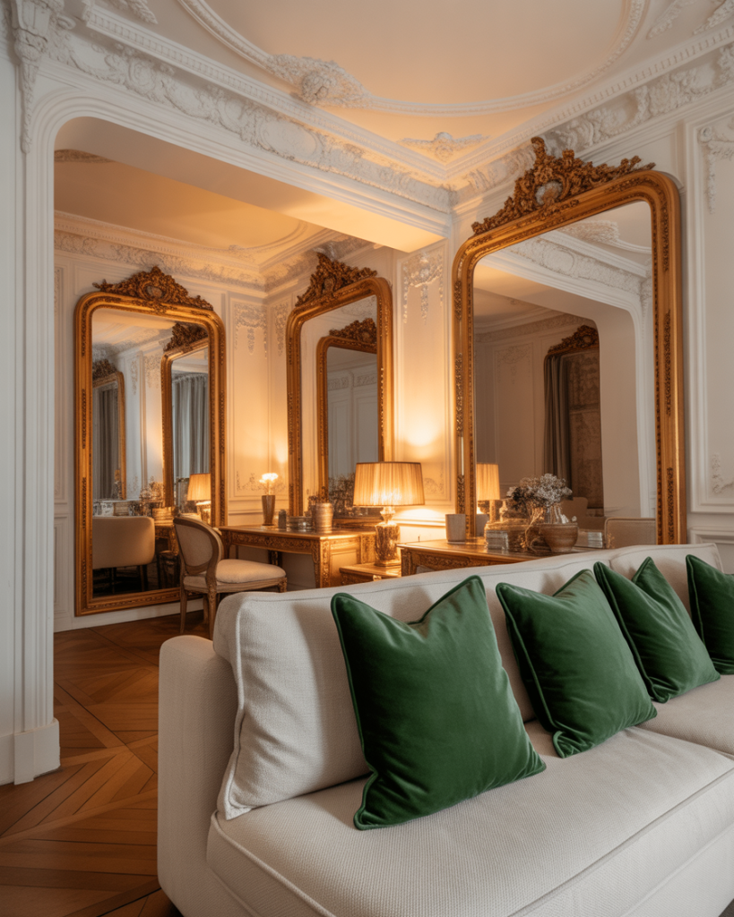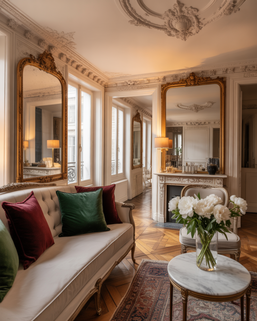 A vintage-meets-modern Parisian look brings elegance into any micro apartment. Think high ceilings, moldings, gold mirrors, and soft neutrals. In 450 sq ft, this style adds luxury without excess. I once saw a Paris-inspired studio with checkered tiles and velvet cushions—it felt both cozy and sophisticated. 2026’s interiors embrace global inspiration, and Parisian charm never fades.