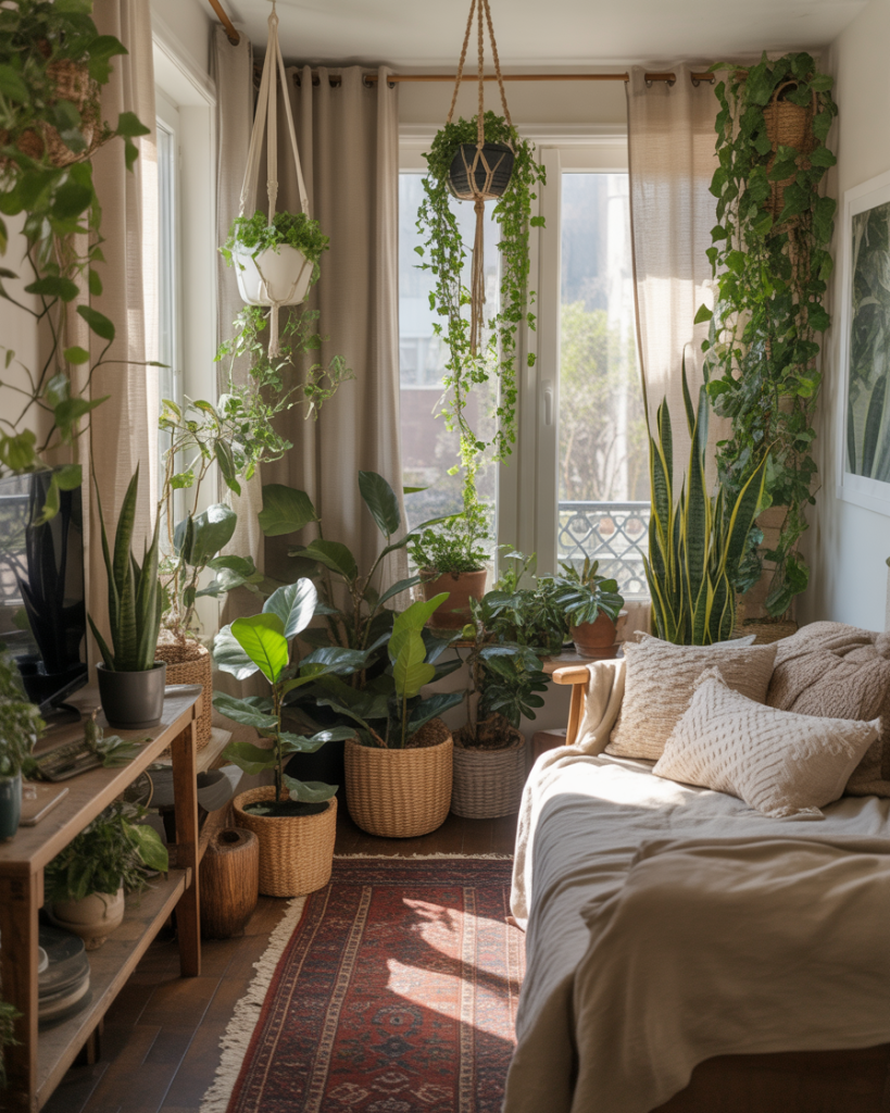 Plants can redefine your tiny home. In a 500 sq ft studio, large ferns, hanging ivy, or a mini indoor tree soften harsh lines and purify the air. My friend’s bohemian studio looked alive thanks to her greenery—it felt like a small jungle sanctuary. 2026 design trends celebrate sustainability, making nature the best decorating tool.