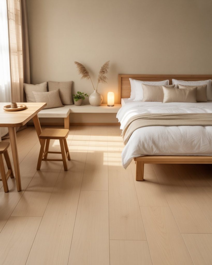 Choose items in pale woods, neutral textiles, and simple design to maintain a sense of balance. There was a design I came across that integrated tatami mats and linen drapes. It had a sense of calm, warmth, and grounding to it. It incorporates the wellness-focused aesthetic of 2026 wonderfully.