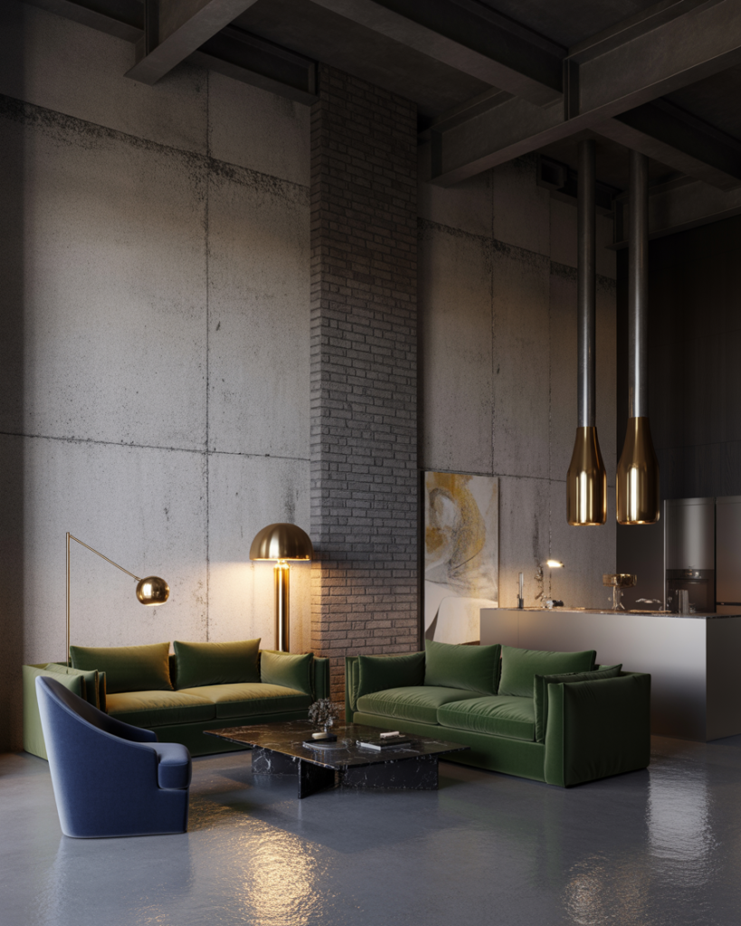 Imagine an industrial base with luxury finishes—exposed concrete paired with brass lighting or velvet seating. In 450 sq ft, this contrast makes a tiny apartment feel large and stylish. I saw this look in a converted loft: pipes met chandeliers, and it somehow worked perfectly. The modern-meets-glam trend fits the expressive attitude of 2026.