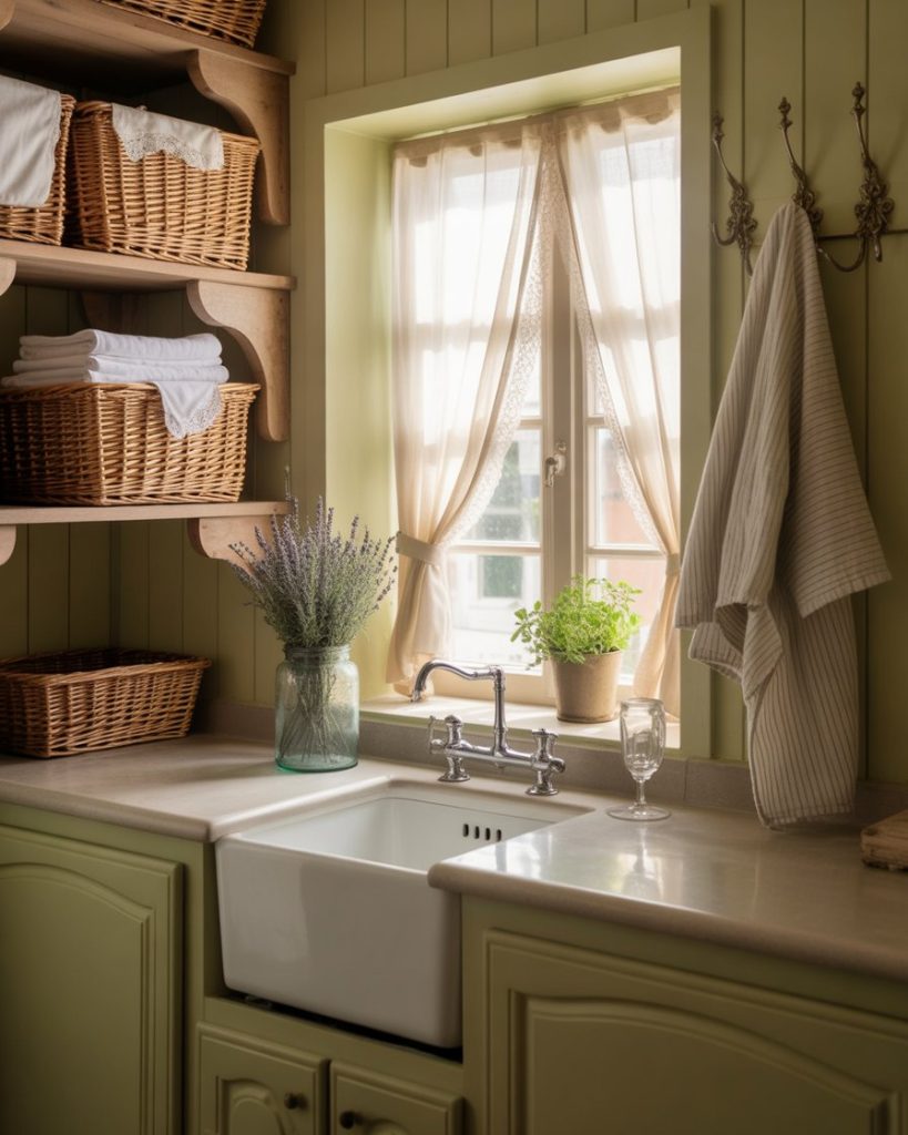 A French country-style laundry nook brings delicate charm to even the tiniest corners. Soft colors, wicker baskets, and curved details pair beautifully with compact machines and clever storage. Readers often say this look eases the stress of weekly chores. Adding a tiny sink or small curtain skirt warms the space further. Decor personalities like Courtney Allison frequently show how French country blends elegance with approachable practicality.