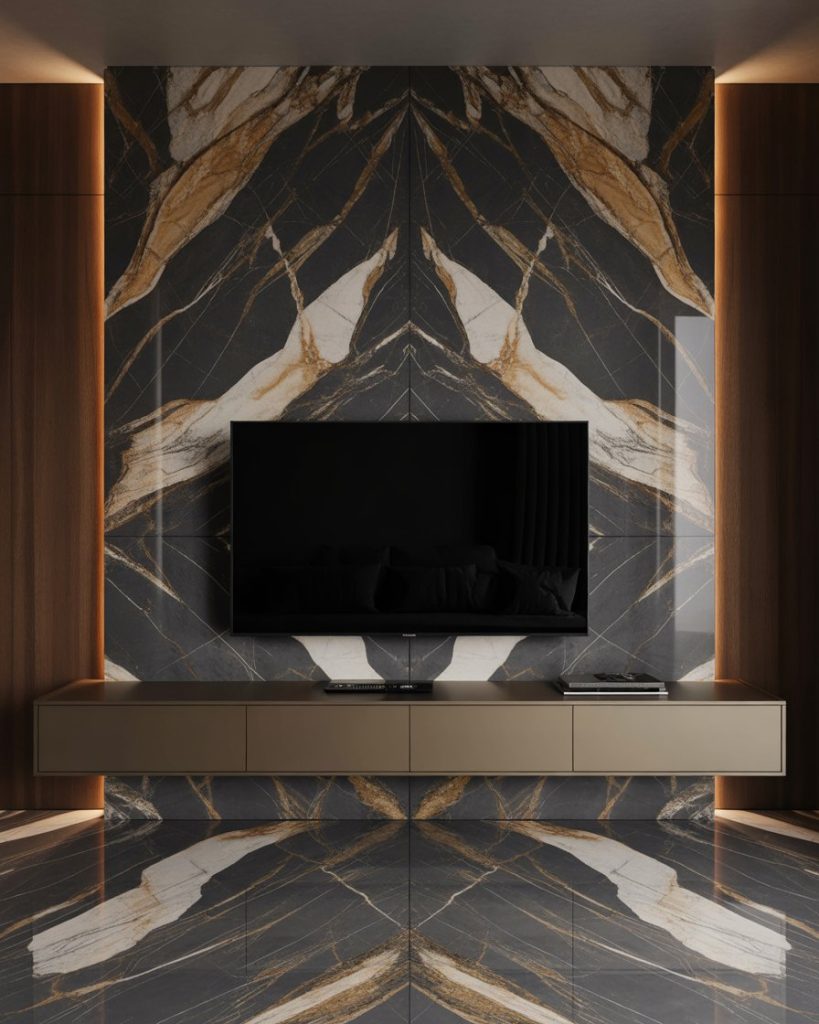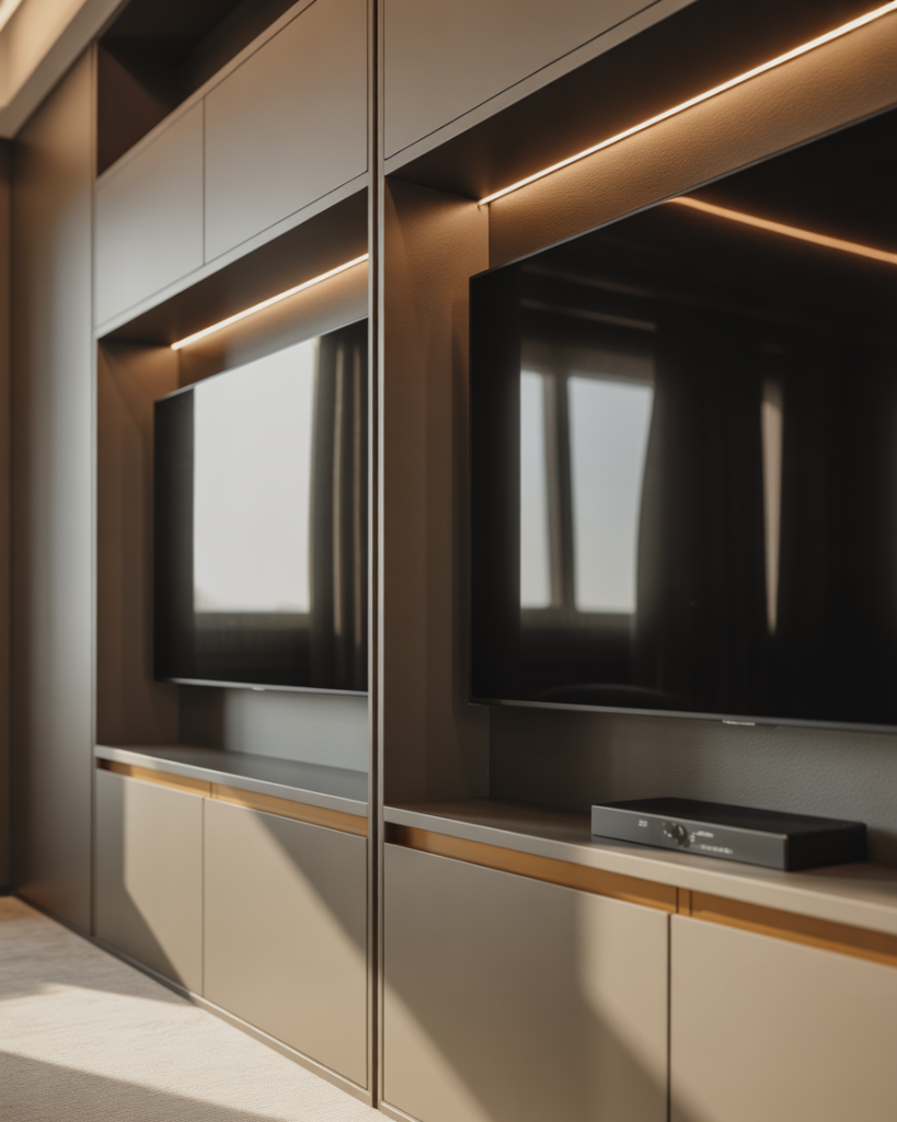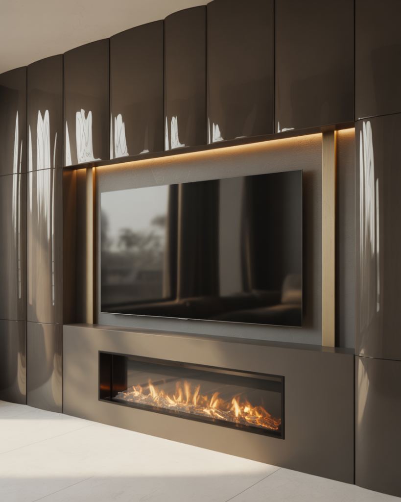 For home-based workers, a sleek luxury TV wall in the office helps create a sophisticated backdrop for video calls. Smooth lines and neutral tones keep the space productive, while subtle design choices add calm. Many remote workers prefer modern styles that feel intentional and clutter-free.