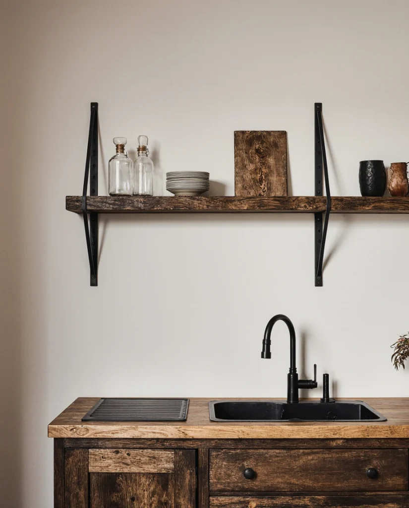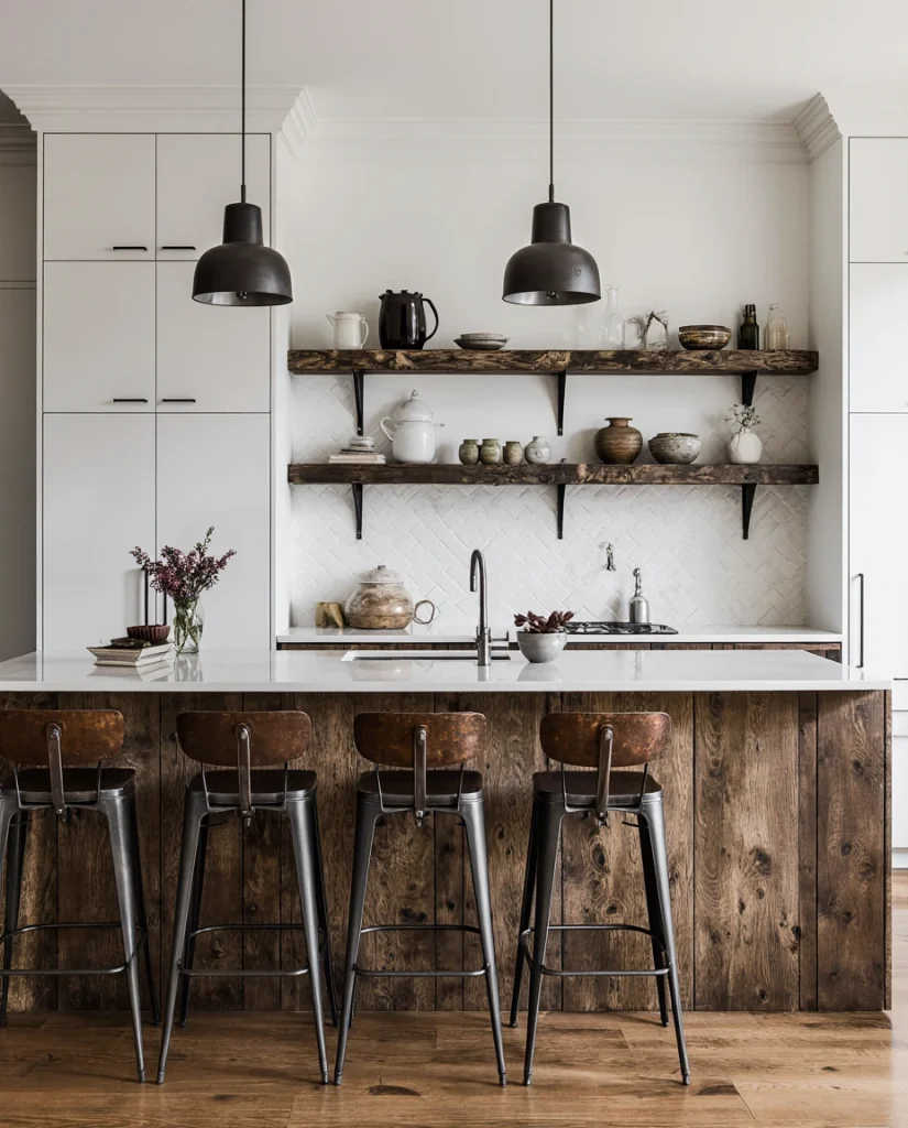 A minimalist take on Western decor uses cleaner cabinetry, open shelving, and natural stone. This is perfect for small or modern homes where clutter-free living is essential. The mix of simplicity with subtle Inspo from the West feels fresh, especially when paired with light wood and matte finishes.
