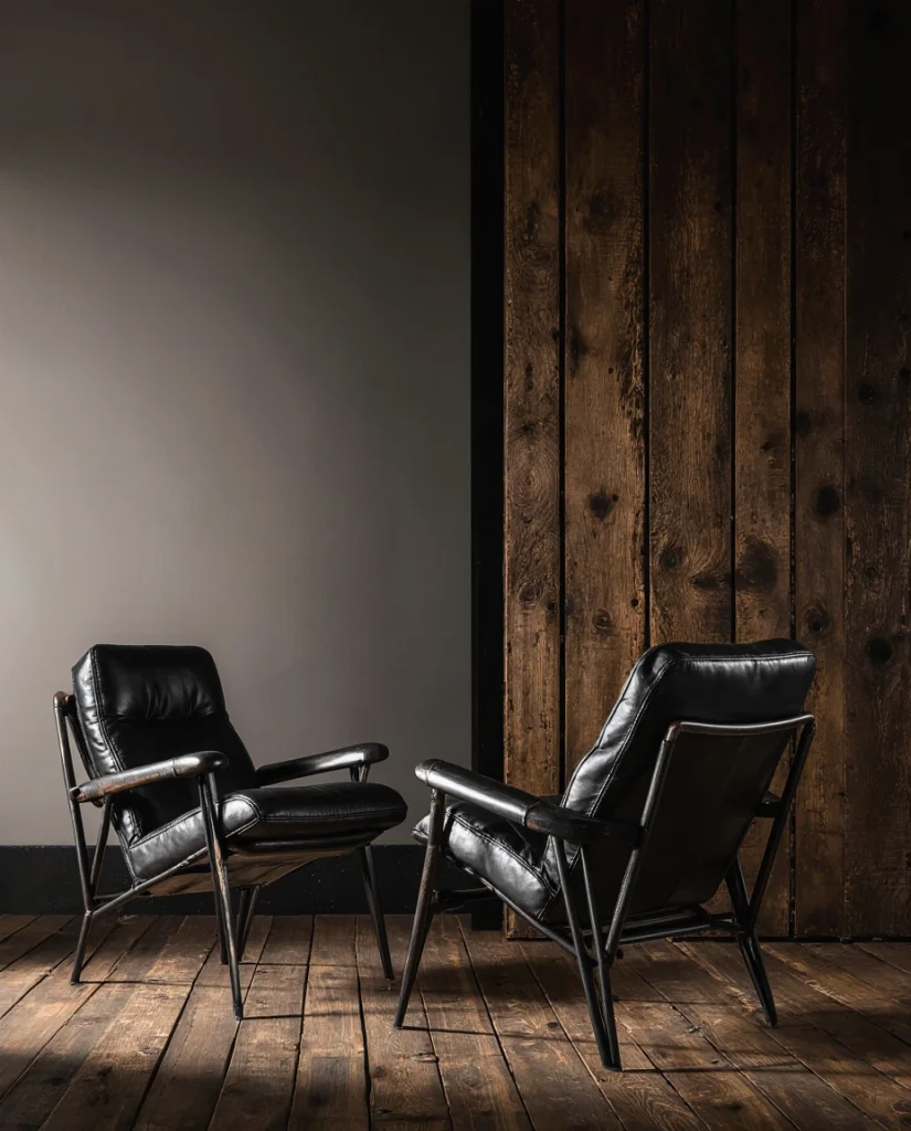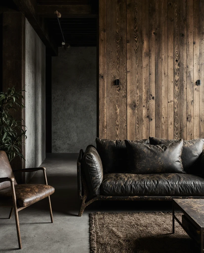 An edgy Western living room introduces angular shapes, bold materials, and dark metal accents. This idea suits homeowners who like Western themes but prefer a sharper aesthetic. Mixing smooth leather with distressed textures creates a dynamic balance. The result feels confident and modern, a style often praised by contemporary design publications for its bold personality.