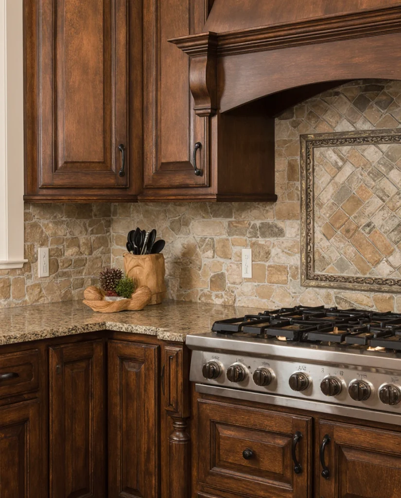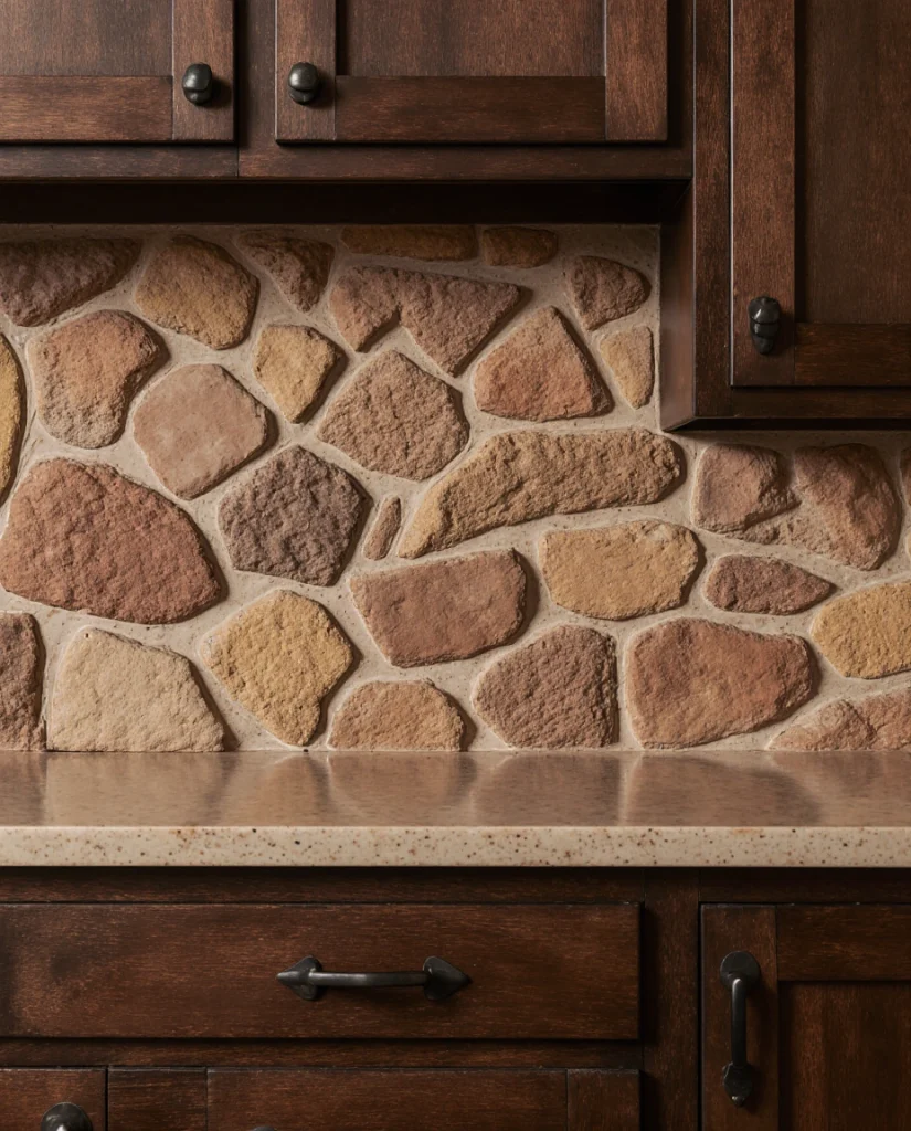 19. Ranch-Style Kitchen with Rustic Stone