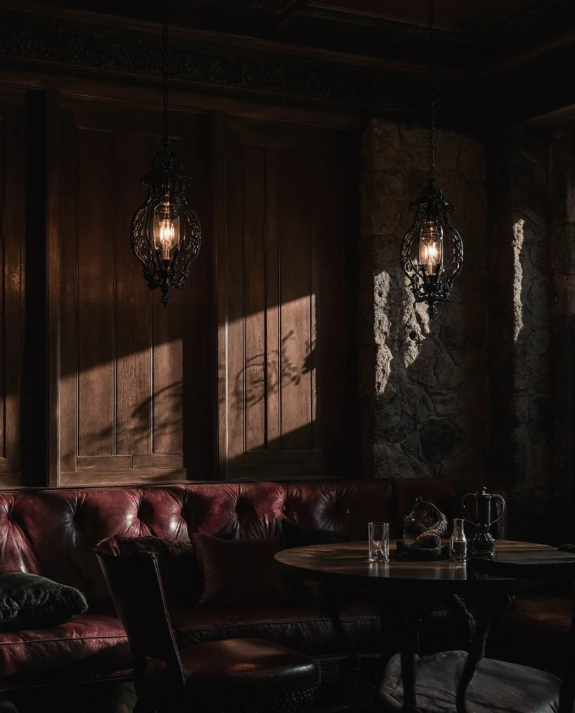 A Gothic Western direction adds edgy character using darker woods, iron hardware, and dramatic silhouettes. Homeowners who prefer bold statements appreciate this style because it feels cinematic without being overwhelming. It works well in dining rooms, offices, or accent areas where contrast is desired.