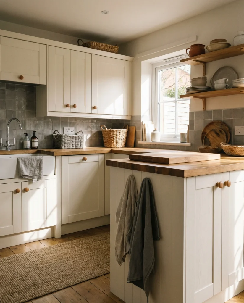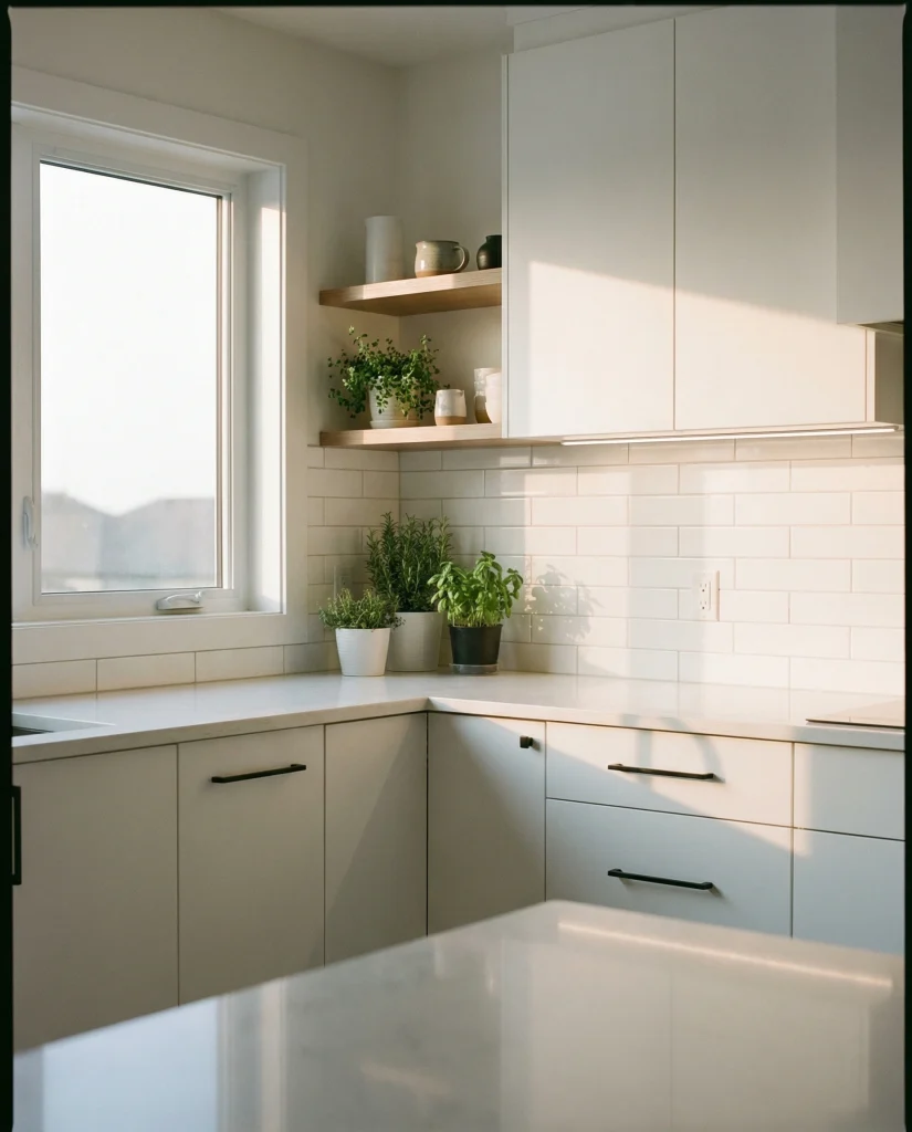 Outmoding White Kitchen Cabinets 2026 with an off-white palette remains a welcoming touch; this fashion flirts with silky neutrals and warm metals. An off-white kitchen acts perfectly with wood accents, light granite, or a black countertop, perfect for a modern and fresh but timeless look. I witnessed this white brighten an apartment with a narrow kitchen and melt it into warm elegance rather than chill sternness.