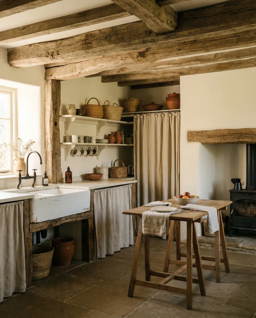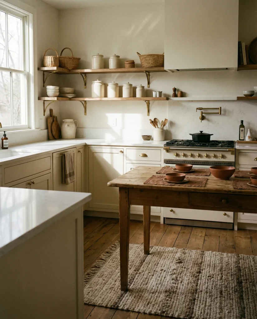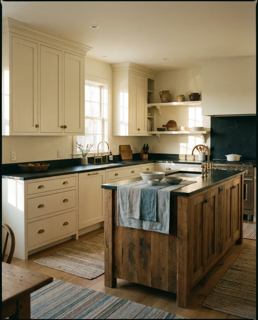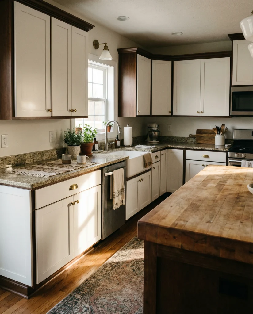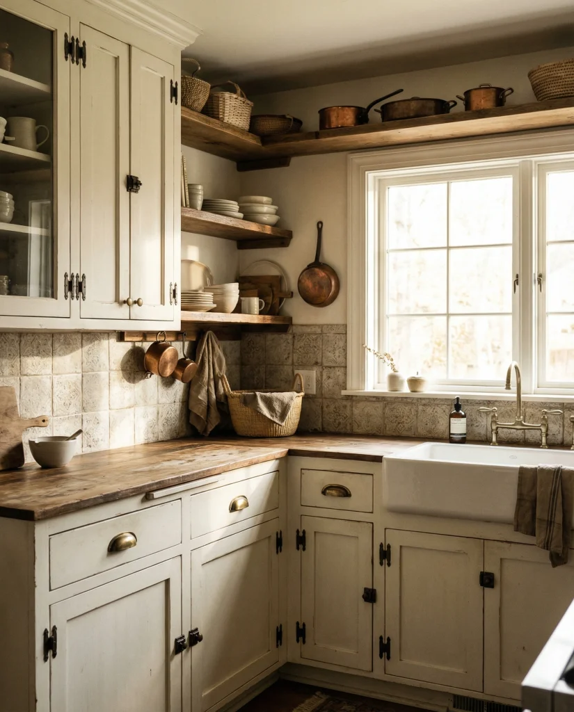 White Kitchen Cabinets 2026 with Creamy Antique Rustic Ideas and Modern Wood Island Design Trends
