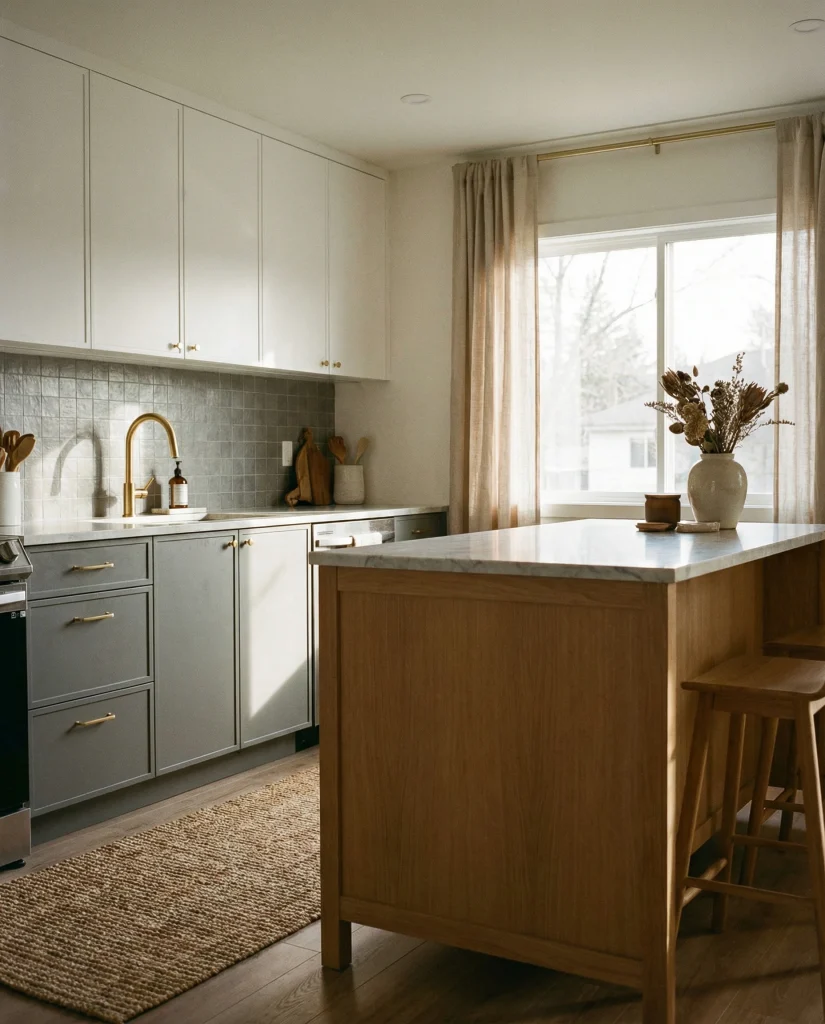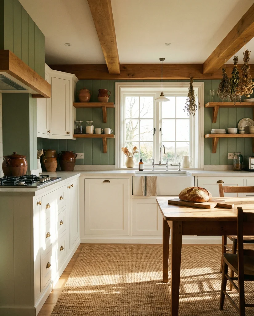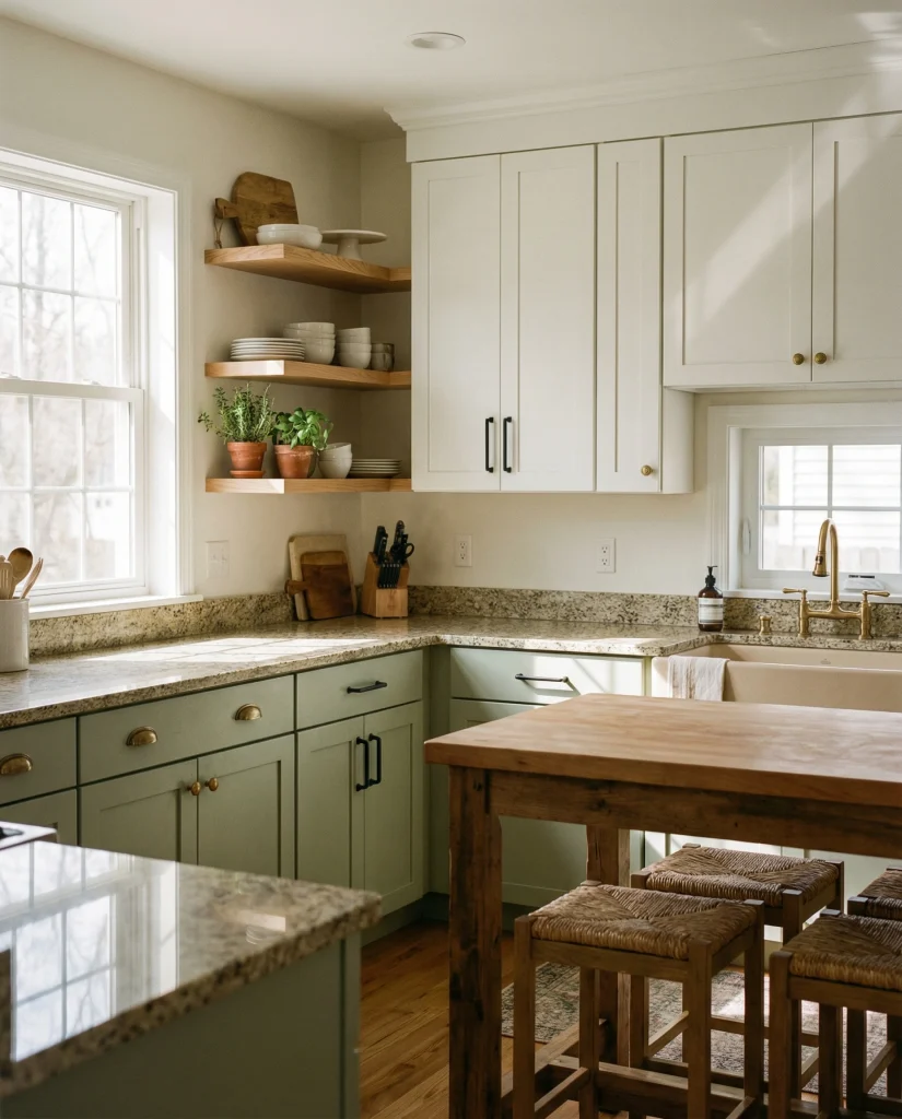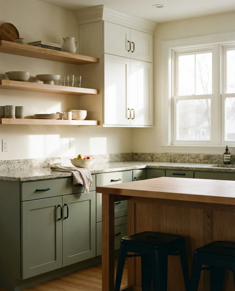 The color green beside white cabinets is surely one of the highlights of 2026. Green gives the area some oomph; white makes it light and airy. Blacks or golds on the hardware, or anything with an earthy feel like granite or a wooden butcher block, work well in this pairing. I helped a friend pick a soft, sagey shade that read a little more muted for the lower cabinets with white uppers, and—heck—the change was like a bit of a transformation: poof! You just want to hang out in the kitchen.