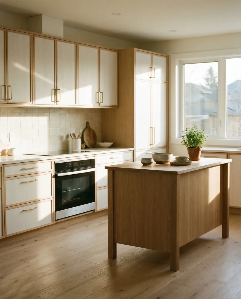 Two-tone is the answer for real depth and simplicity without overkill for the space: privileged homeowners are using natural white oak on the lower cabinets and colors on the upper. Many homeowners mix gentle creams or muted taupes with oak to preserve warmth but present a clean outline. Whenever homeowners choose to style it, gold-toned or black hardware can always chime in for contrast. The design is favored by design enthusiasts because of how the finished cabinetry adds a place for the eye to rest. They would also suggest using white oak in the space for clients with small kitchens, as it makes the kitchen feel much more significant. . getBoundingClientRect().top+window.pageYOffset;ytHorizontalScroll.style.position=’sticky’;ytHorizontalScroll.style.top=scrollTop-850+’px’;},2500); [ID43] [IMG_PLACEHOLDER]